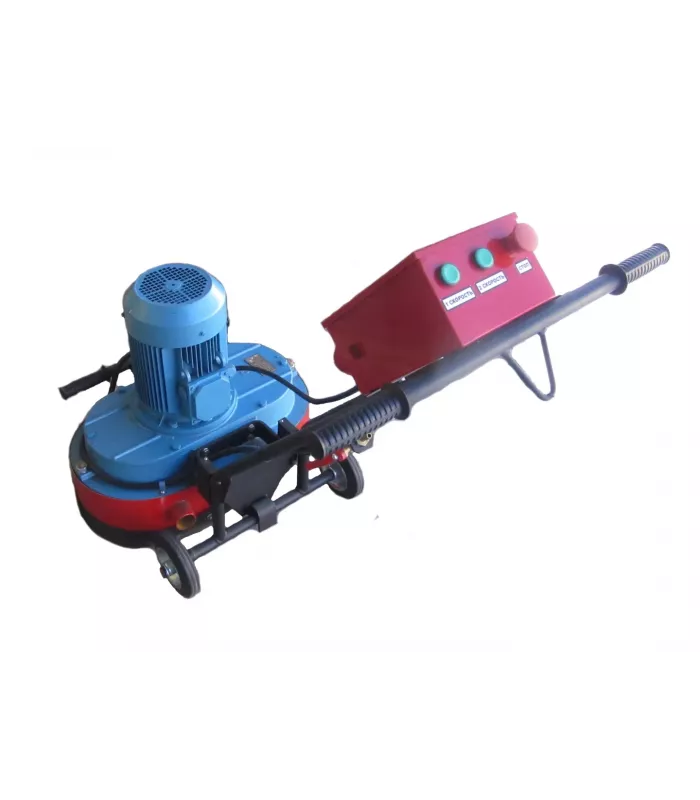 Машина содержит шлифовальную головку и ходовое устройство. В состав шлифовальной головки входит электродвигатель, установленный на цилиндрическом двухступенчатом редукторе с двумя выходными валами. На валах закреплены траверсы с абразивным инструментом.
